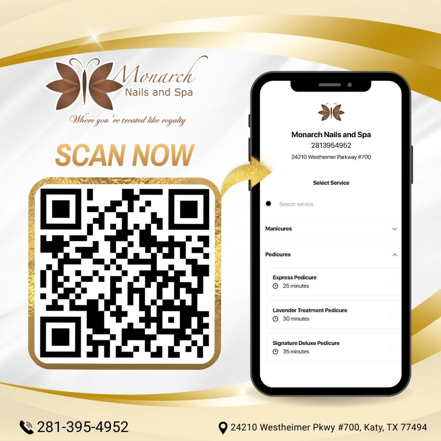 Located conveniently in Katy, TX 77494, our nail salon is one of the best salons in this area. Monarch Nails and Spa offers premier nails care and spa treatment services to satisfy your needs of enhancing natural beauty and refreshing your day.